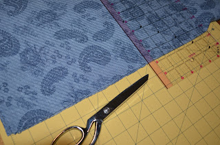 When doing applique you want to make sure that your fabric doesn't shift around. On this refashion both fabrics were sturdy enough to stay where placed when pinned (pins are your friends). When I was able to fold down the edge I did a straight stitch. When I was sewing a raw edge I chose a zigzag. And to shake it up a little I made sure the front wasn't symmetrical, but if that's your thing, by all means . . .go for it!